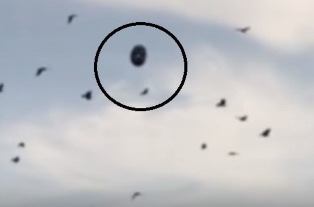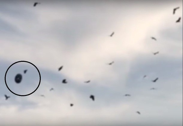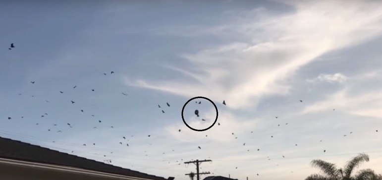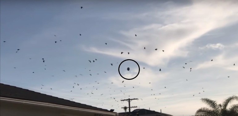 As imagens foram registradas em Los Angeles, EUA. Centenas de aves rondaram o misterioso objeto e despertaram a curiosidade de ufólogos