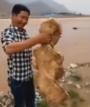 Um criatura bizarra e com silhueta humana foi encontrada aparentemente viva numa praia chinesa. O registro, sem data ou local específico, foi postado recentemente pelo canal do YouTube The Hidden Underbelly