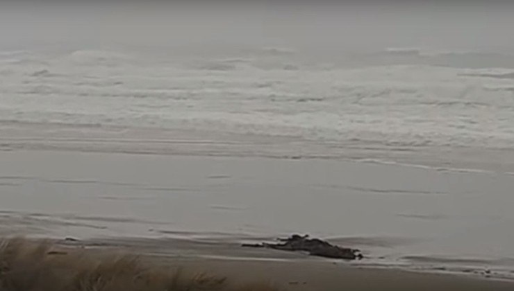 O estranho corpo possuí mais de 10 m de comprimento e sua aparição chocou os visitantes da costa de Half Moon Bay, no Oregon, EUA