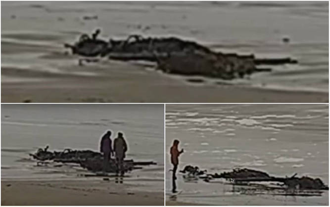 Os restos chegaram até a areia da praia graças as fortes tempestades que atingem o local
